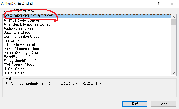 2. 설치 후 Access 폼 디자인에서 ActiveX 컨트롤 'AccessImagin~' 삽입 후 해당 칼럼 지정