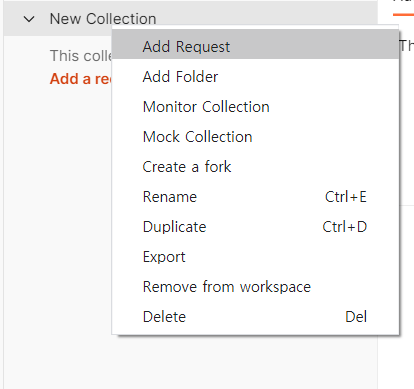 생성한 Collection에서 Add Request 클릭!