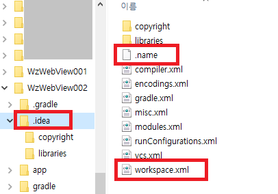 - workspace.xml 파일 : 기존폴더명을 찾아서 현재 폴더명을 바꿔준다. (여러곳에 있을수있음)